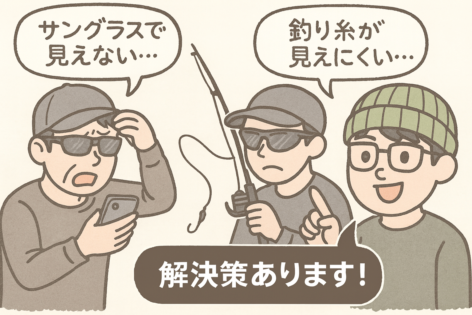 このサングラスだと針穴もよく見え、釣り糸通しがとても楽。