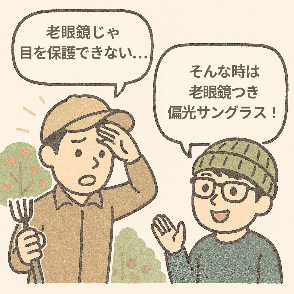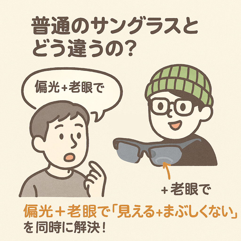 A. 偏光+老眼で「まぶしくない+見える」を同時に叶えます。