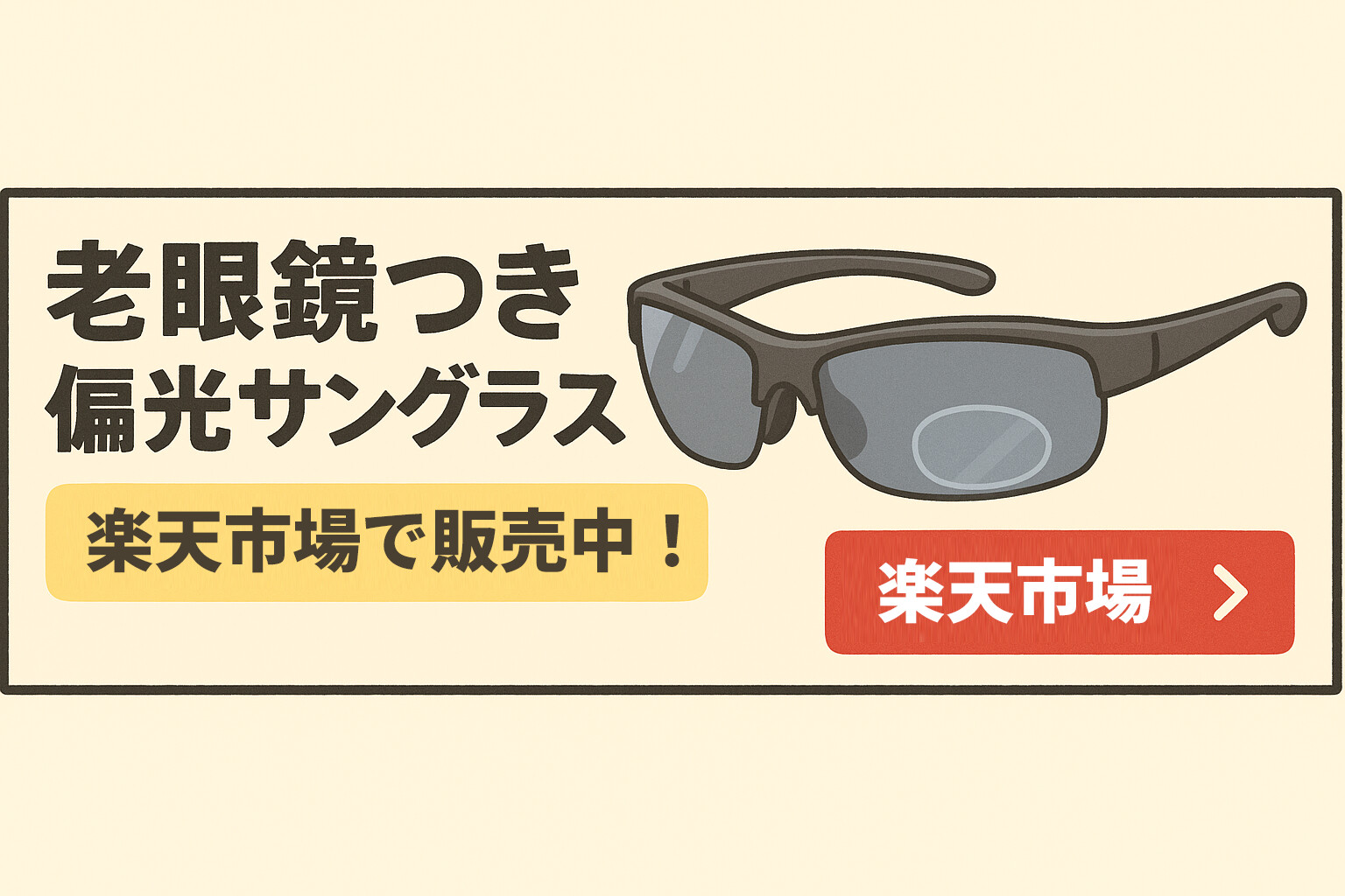 老眼鏡つき偏光サングラスなら、まぶしさカットと手元のピント合わせを一度に解決。