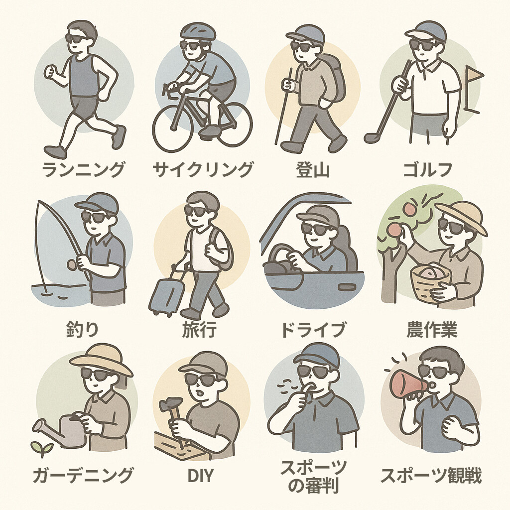 釣り・ゴルフ・ランニング・農作業・旅行・スポーツ観戦まで。